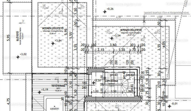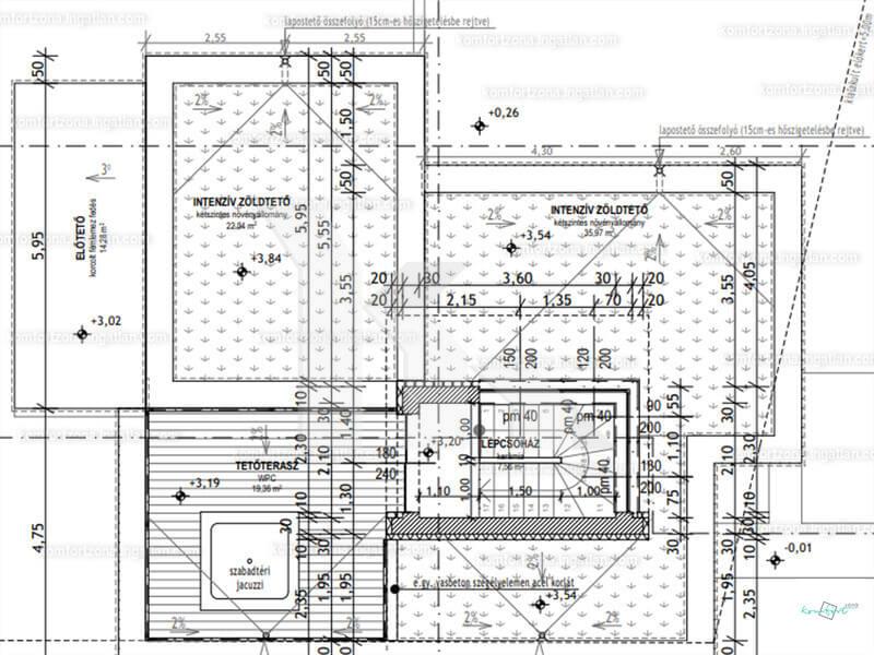 Tetőterasz – jakuzzi kiállás előkészítése, illetve zöld tető / növények telepítése/-a lépcsőházon keresztül közelíthető meg, ahol teljes panoráma tárul elénk.
