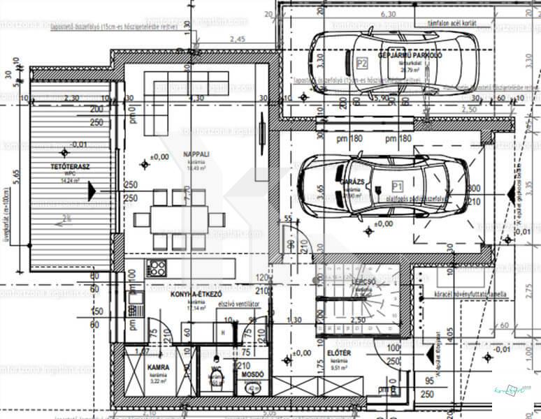 egyéb hasznos alapterület: 121.09 nm / terasz, tetőterasz, intenzív zöldtető, garázs /